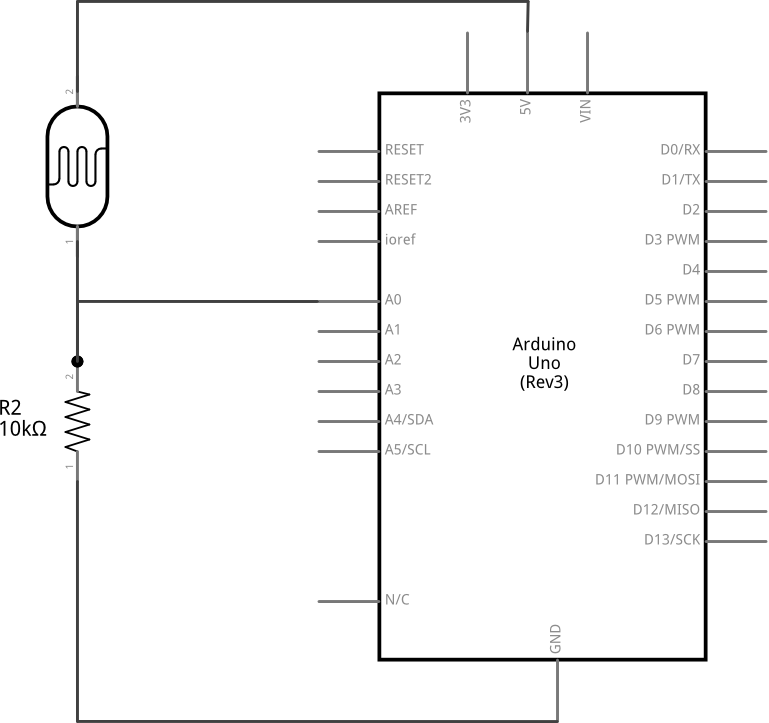 int fo = A0; //definiraj fo = A0 void setup() { Serial.begin(9600); //inicijalizacija serijske veze } void loop() { Serial.println(analogRead(fo)); //očitaj analogni izvod i pošalji //rezultat putem serijske veze delay(100); //čekaj 100 ms }